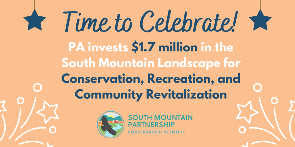 This announcement has special implications for the South Mountain Region, including funding the South Mountain Partnership. As a Conservation Landscape Initiative, we rely on this funding for our 2025 Mini-Grant Program, staff salaries, communications, and annual programs like convening partners, organizing events, and Science Summit and Research Corps. Especially exciting, this grant allows the Partnership to take action on the State of the Region Report Card; focused on Regional Trails. We are so grateful for the continued support of PA DCNR for these efforts!