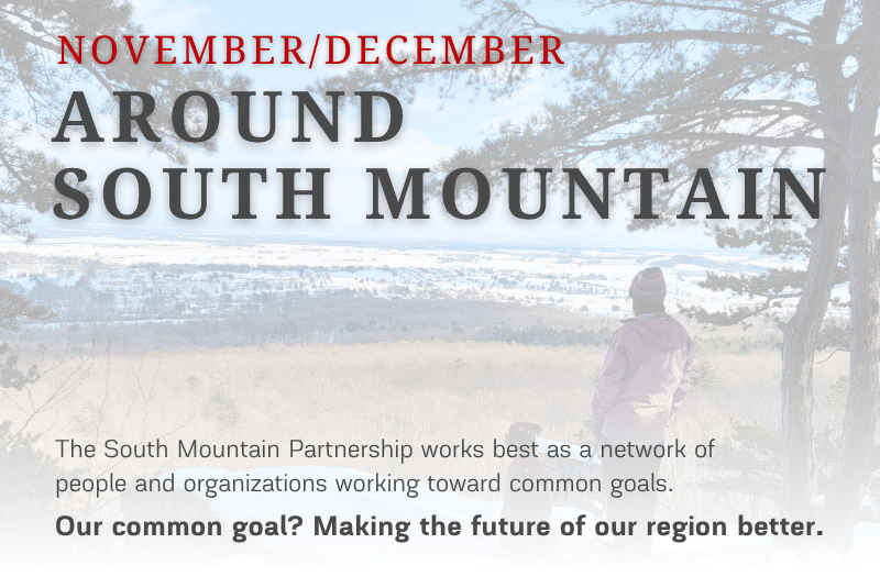 November/December 2025 Around South MountainView Newsletter November/December 2025 Around South MountainView more newslettersSign up to Receive our Bi-monthly E-newsletter Fill out my LGL Form!Around South Mountain e-Newsletters September/October Around South Mountain Newsletter July/August 2025 Around South Mountain Newsletter May/June 2025 Around South Mountain Newsletter March/April 2025 Around South Mountain January/February 2025 Around South Mountain Newsletter November/December 2024 Around South Mountain Newsletter September/October 2024 Around South Mountain Newsletter July/August 2024 Around South Mountain Newsletter May/June 2024 Around South Mountain March/April 2024 Around South Mountain January/February 2024 Around South MountainNewsletters Archive