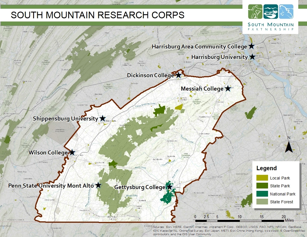 The South Mountain Research Corps includes a pilot program with small research awards to support student experiential applied research as well as natural and cultural resource conservation efforts of landowners and land managers throughout the South Mountain region.